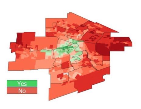 This might ultimately be the downfall of Safe Speeds WPG’s efforts. It’s no surprise that they are all in agreement, as that’s how advocacy groups are created. However, as they move forward with their campaign they may find that a map of people who support lower speed limits looks something like this: